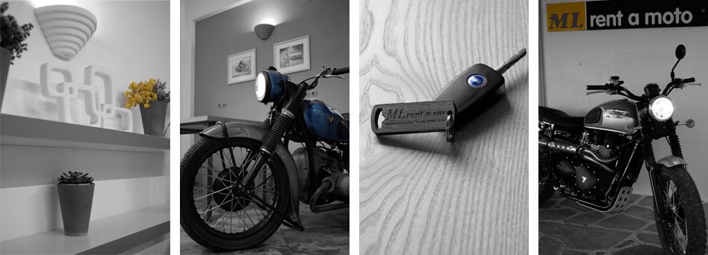 7 reasons to hire a car or rent a moto - scooter and quad with "ML" on Paros.